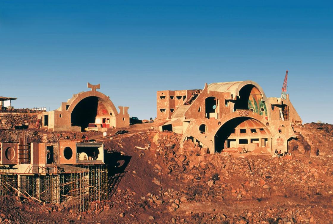 Foundry Apse, West Housing, and the Vaults of Arcosanti, Paolo Soleri, circa 1973, Yavapai County, Arizona; Courtesy of the Cosanti Foundation.
