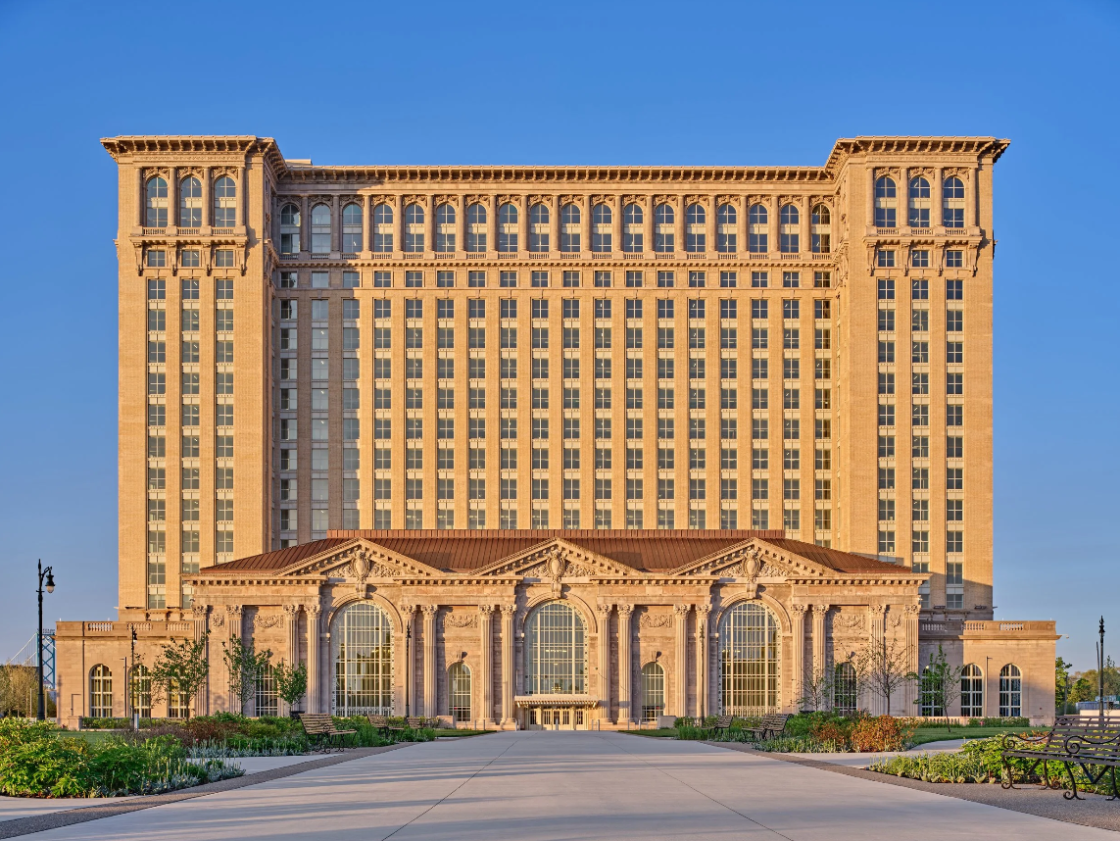Located in Detroit’s Corktown neighborhood, Michigan Central Station was the city’s primary railway depot from 1913 to 1988. By the turn of the 20th century, the abandoned station had become a symbol of Detroit’s industrial decline. Now meticulously restored by the Ford Motor Company, Michigan Central Station reopened in 2024 and is the center of a vibrant, multi-use campus focused on technology and innovation.